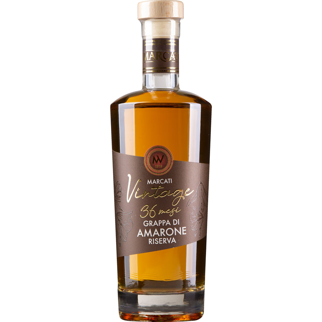 Die Marcati Grappa Vintage 36 mesi Amarone Riserva wird aus dem Trester von Amarone-Trauben hergestellt. Amarone ist ein intensiver und kräftiger Rotwein aus der italienischen Region Venetien. Der Trester wird sorgfältig ausgewählt und destilliert, um einen hochwertigen Grappa mit besonderen Eigenschaften zu erzeugen.
